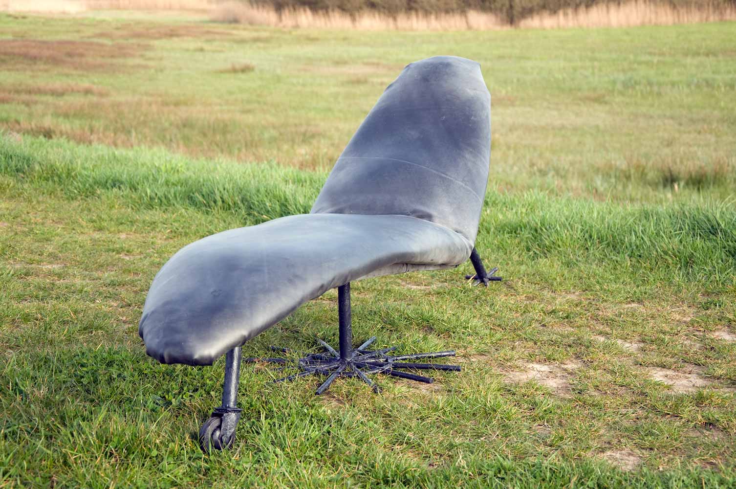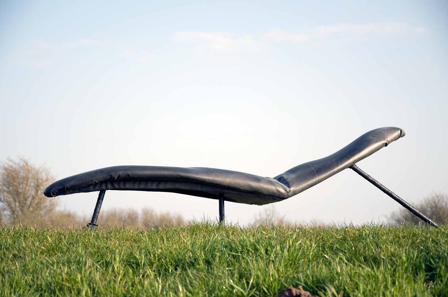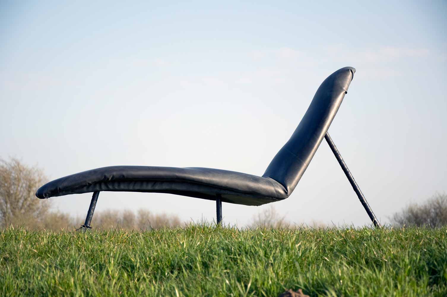 Recently Wout finished his all weather/seasons outdoor chair Kitty. An organic garden chair that excels in its simplicity. Easily to move by a wheel in the front. The back is adjustable with a post with anchor pin for grounding. The seating area and back are foam filled, offering great sitting comfort. The upholstery is EPDM rubber, suitable for outdoor use with a ‘life span’ of many years. The seat can remain outside whatever the weather or season is.