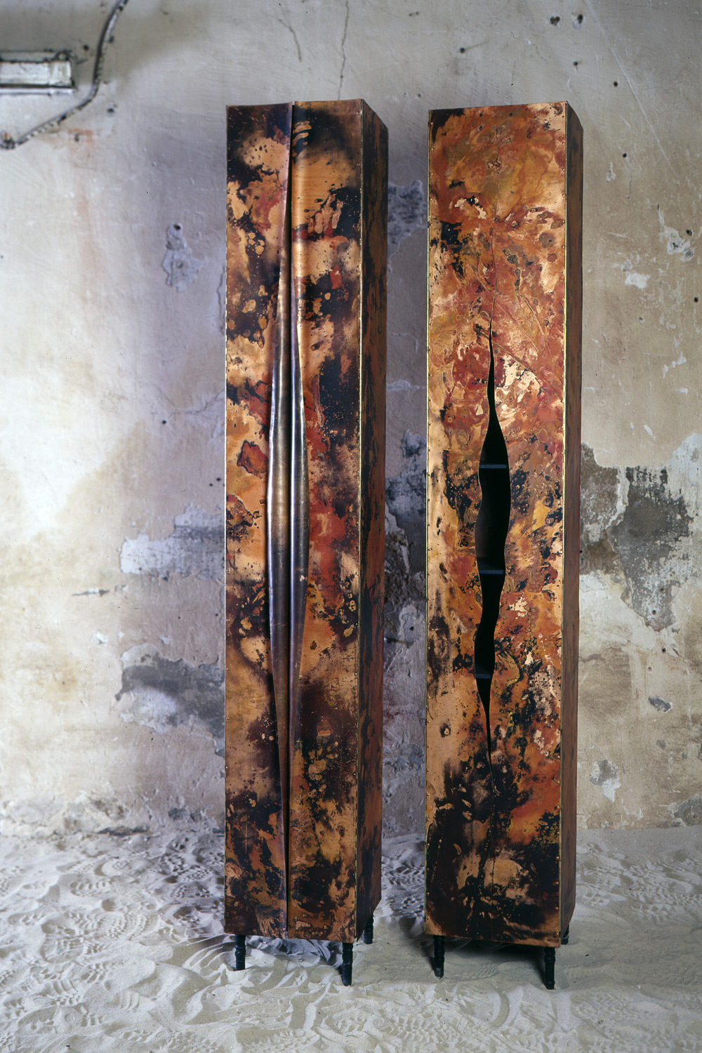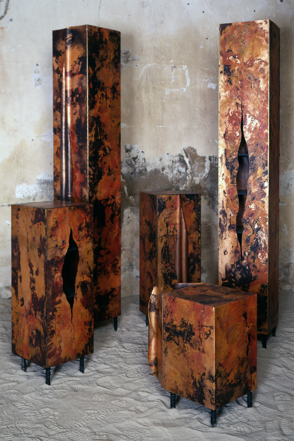 Patinated copper cupboards